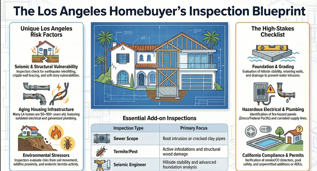 Beyond the standard checklist, LA inspectors are attuned to several California-specific concerns: