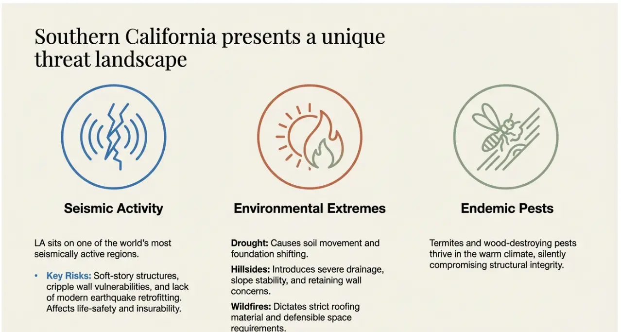 LA buyers face a set of environmental risk factors that simply don’t exist in most other markets: